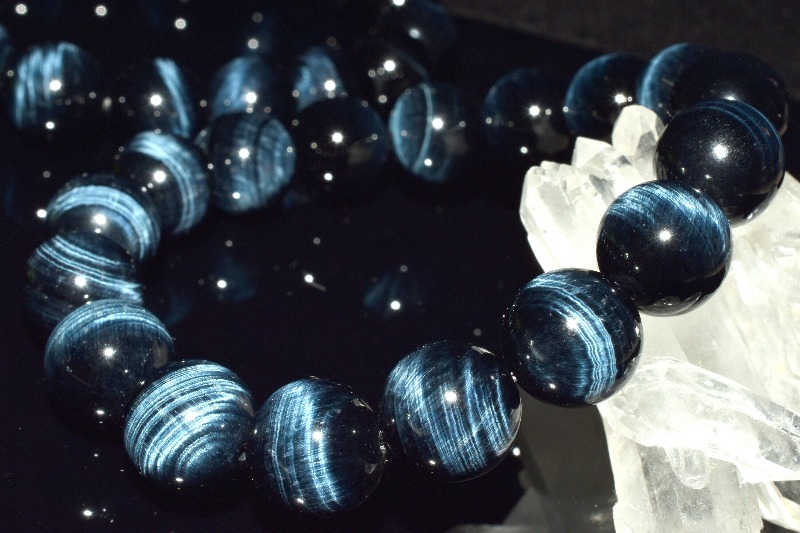 ブルータイガーアイは、光の反射により鷹の目のように見えることから、ホークスアイとも呼ばれます。
