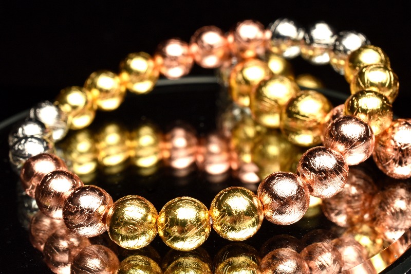 宇宙からの贈り物 アルタイ隕石(メテオライト) 10mm ミックス ブレスレット 【動画】 1個売り _BG5993-10