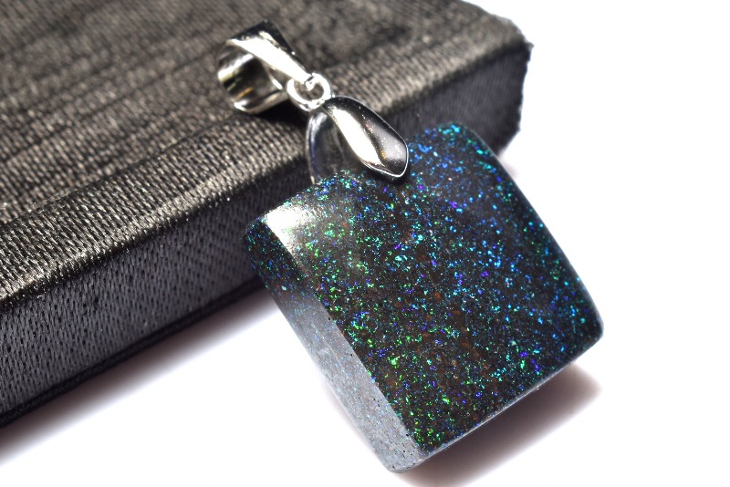 【1点物】神秘的な虹色の輝き ブラックマトリックスオパール 15x15mm レクタングル ペンダントトップ _PC5641