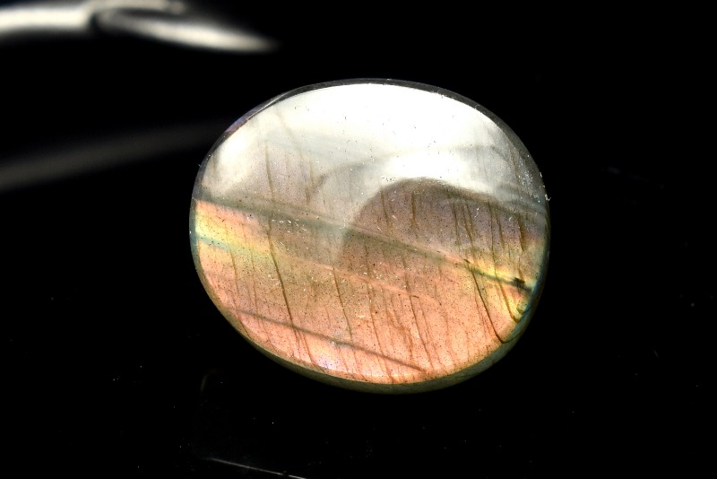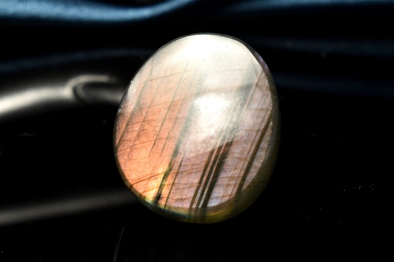 ラブラドライトの特色は、なんと言ってもその美しい閃光です。冷たそうでいて、非常に深みのある光は「ラブラドレッセンス(ラブラド光線)」と呼ばれます。