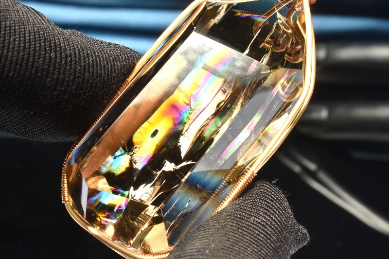 この美しい虹色がなぜ内包されたかというと、地殻の変動や外からの力が水晶に加わることで亀裂が生じ、それが虹色の分散光を放つためとされています。