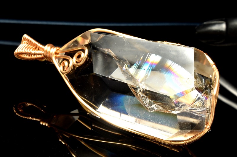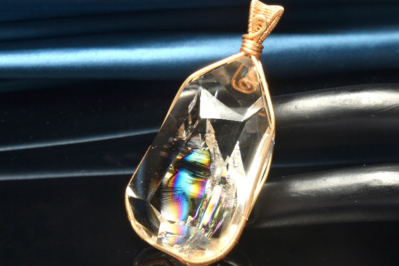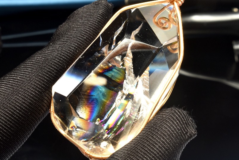 その名の通り、透明のクリスタル(水晶)の内部が虹色に輝く、たいへん美しい石です。