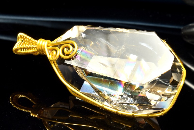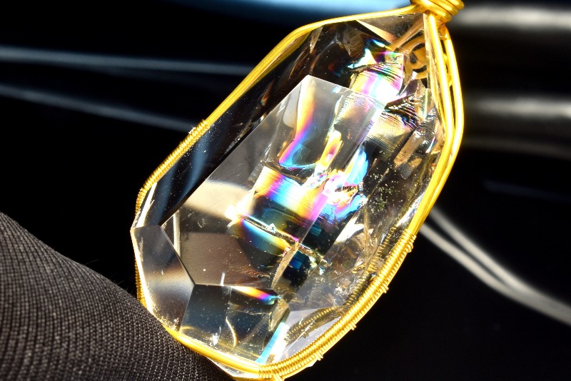 その名の通り、透明のクリスタル(水晶)の内部が虹色に輝く、たいへん美しい石です。