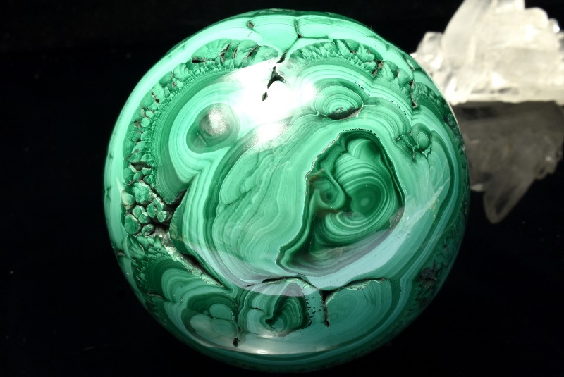 【1点物】高発色◇魔除け マラカイト孔雀石 71mm 丸玉(台座付き) スフィア _CG6587【宅急便のみ】