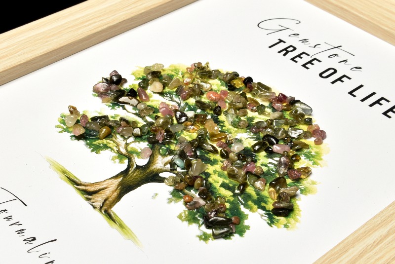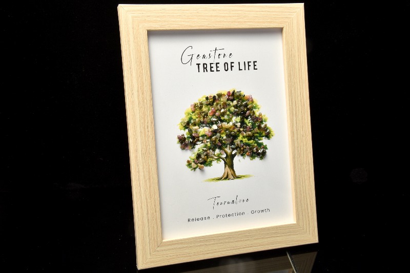 生命の樹 トルマリン 205x155mm 天然石さざれ フレーム 置物 _CRG177-4【宅急便のみ】