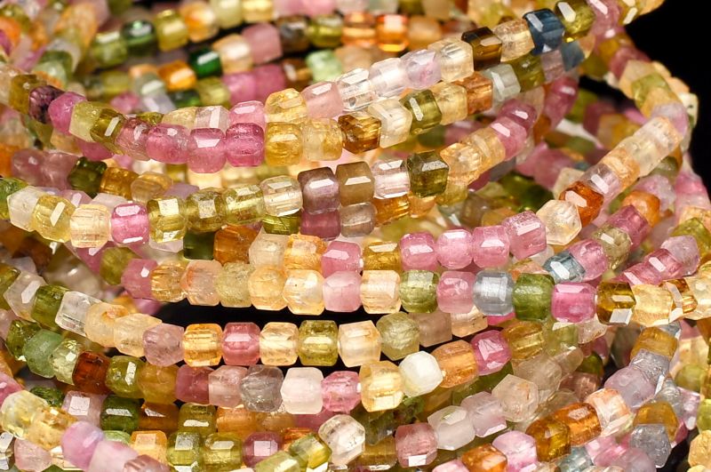 キラキラカット◇ トルマリン 2.5-3.5mm キューブカット ブレスレット 1個売り _B1467