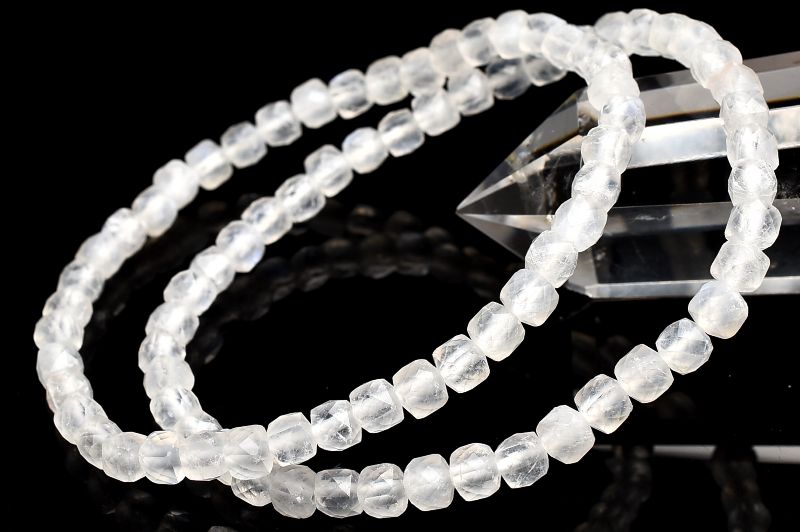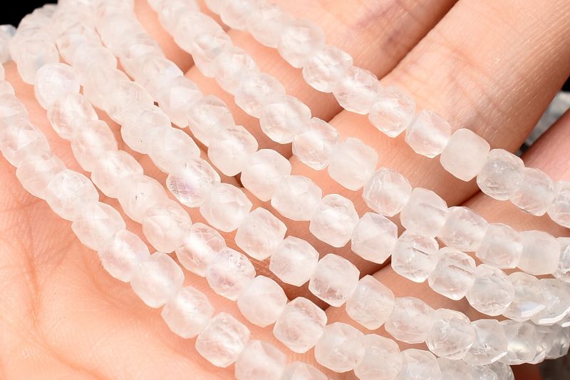 キラキラカット◇ ムーンストーン 4x4.5mm キューブカット ブレスレット 1個売り _B1488