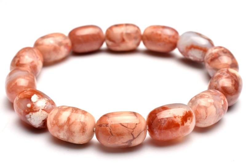 【1点物】ベトナム産◇桜瑪瑙 チェリーブロッサムアゲート 13.5-14x10mm ブレスレット _MA8470