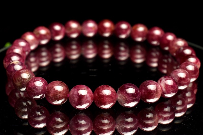 【1点物】ルビーのよう◇ レッドトルマリン(ルベライト) 6.5mm ブレスレット _MA8543