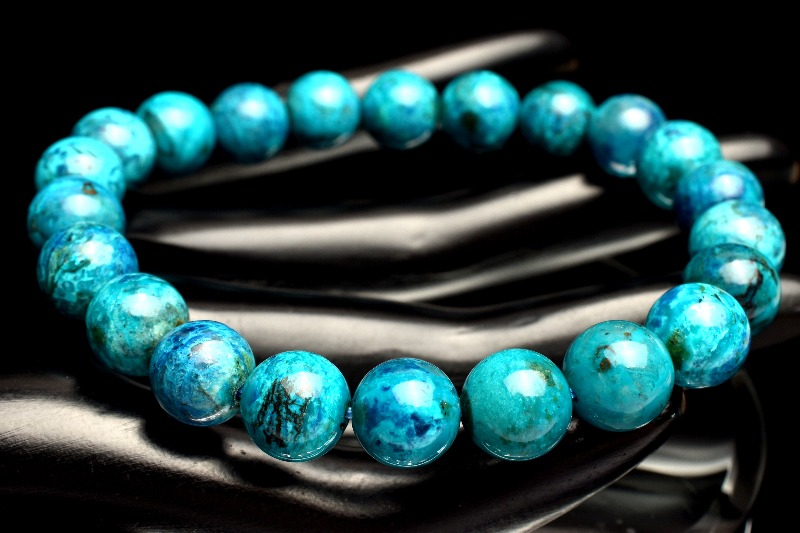 【1点物】高発色◇ペルー産 クリソコラ 9mm ブレスレット _MA8564