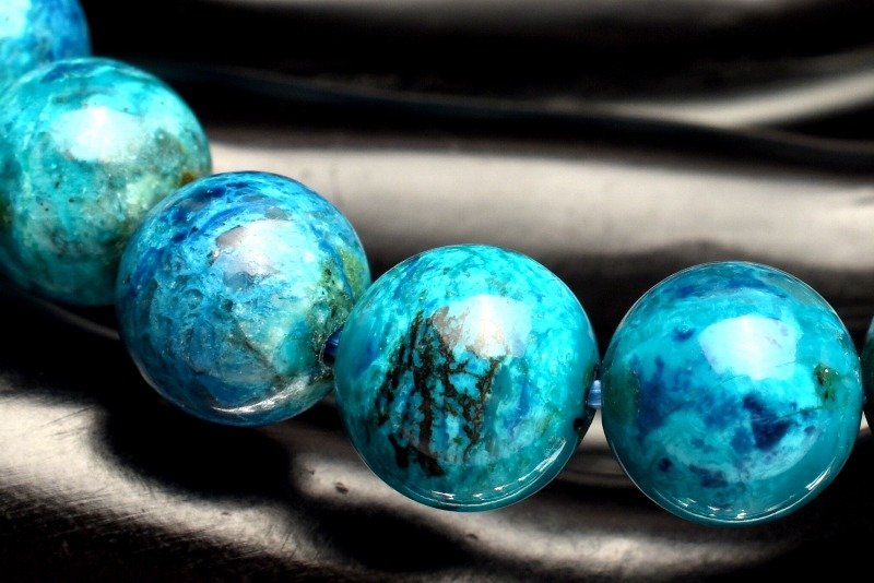 ブルーが本体の多くを占め、グリーンやブラウンなどのカラーが混ざり合って、出来ているため、丸く加工されたクリソコラは、宇宙から見た地球のような外観となっています。