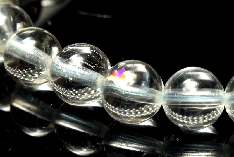 稀に虹入りの珠や、白雲母(モスコバイト)やトルマリンなどの内包物も見られます。