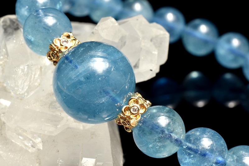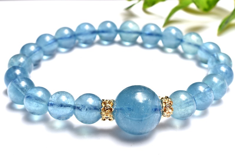 特徴・意味まるで氷のような透明な部分とミルキーな部分が合わさったアクアマリンのシンプルなデザインブレスです。