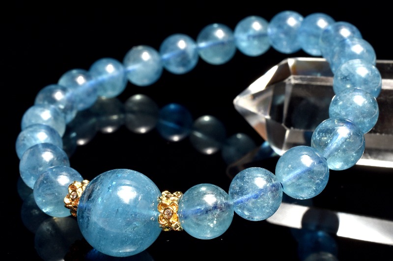 【1点物】美しい海の宝石 アクアマリン 8(丸玉13)mm ブレスレット _MA8743
