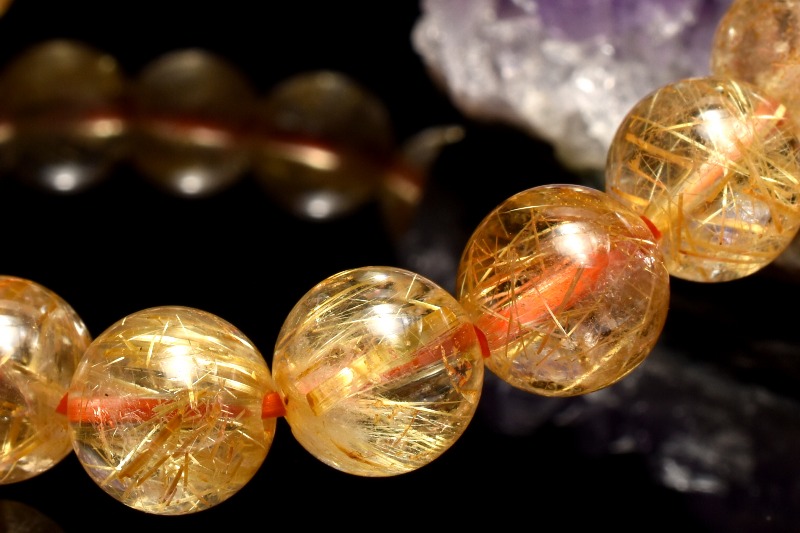 材質ゴールデンタイチンルチルクォーツ 8.5mm 産地:ブラジル
