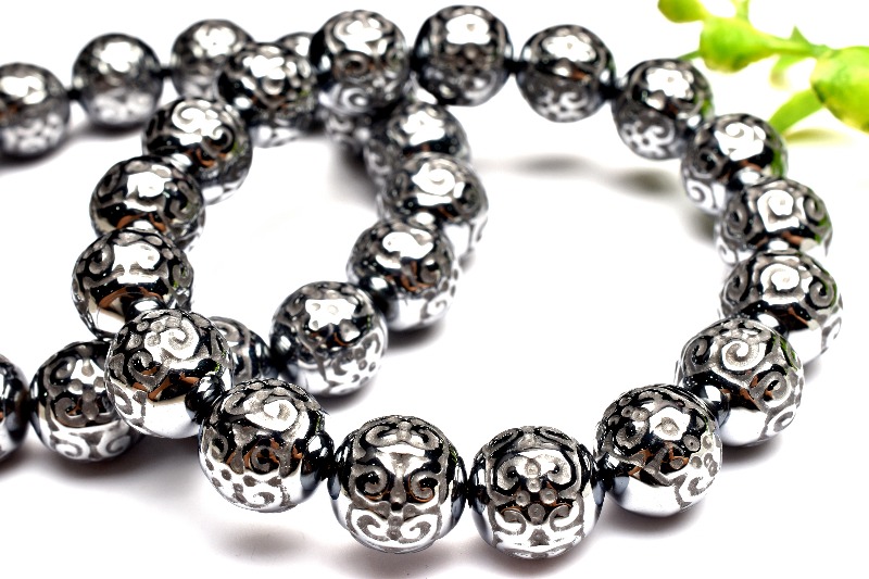 健康のお守りに! テラヘルツ鉱石 12.5-13mm マニ車 ブレスレット 1個売り _BG5995-125-13