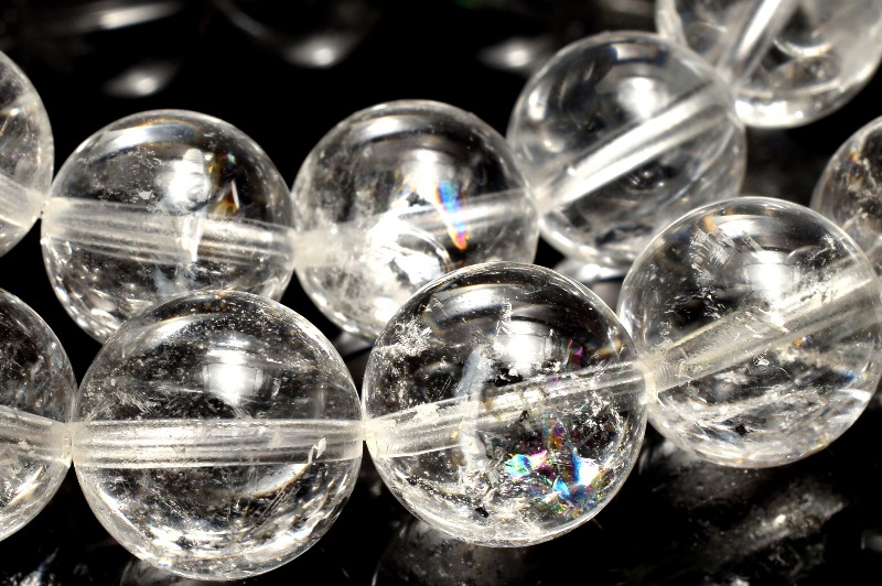 透明度が高く、稀にクラックが虹色に輝く珠がございます。