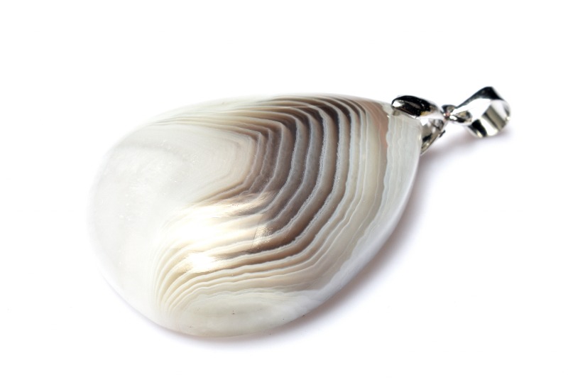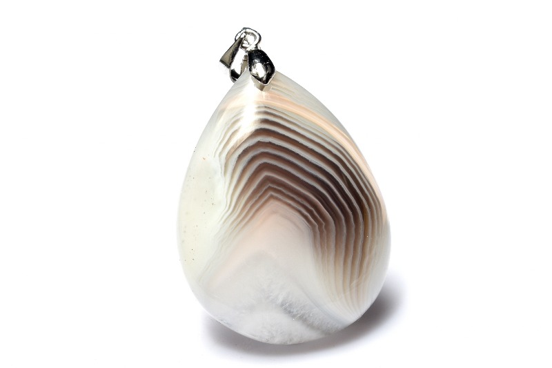 ほんのりとした透明感のある地石に美しい縞模様(しまもよう)が見られるのが、ボツワナアゲートの特徴です。同じ縞瑪瑙の仲間には、ブルーレースアゲート、サードオニキス、天眼石などがあります。