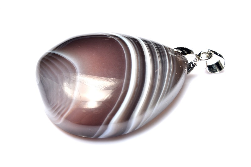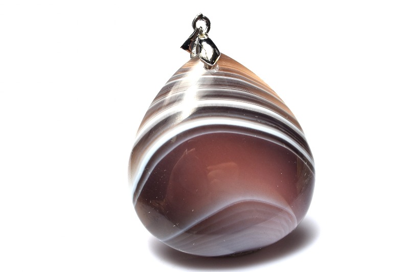 ほんのりとした透明感のある地石に美しい縞模様(しまもよう)が見られるのが、ボツワナアゲートの特徴です。同じ縞瑪瑙の仲間には、ブルーレースアゲート、サードオニキス、天眼石などがあります。