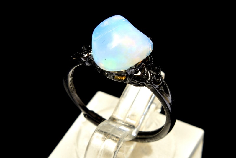 【1点物】Silver925◇美しい遊色 プレシャスオパール 10x9mm 原石 指輪リング(サイズ調整可) _PC5777