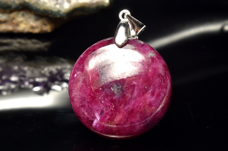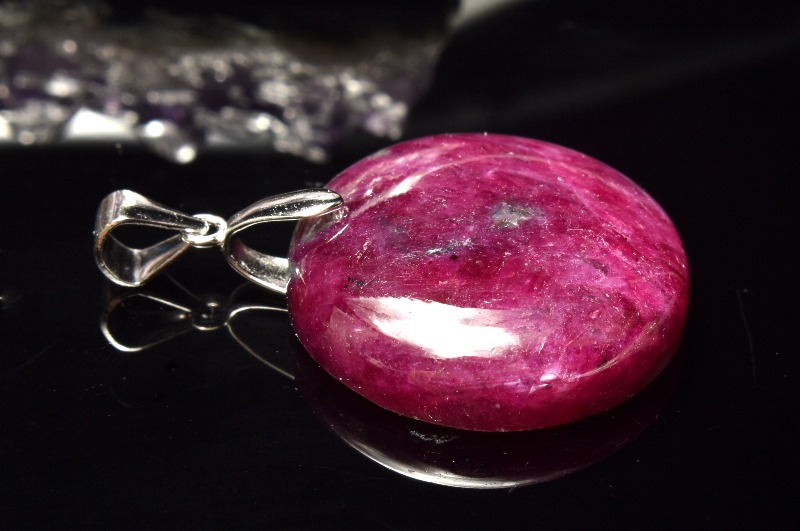 ルビーは、コランダムという鉱物のグループのダイヤモンド(硬度10)の次に硬い鉱物(硬度9)で、赤いものをルビー、青いものをサファイアと呼びます。