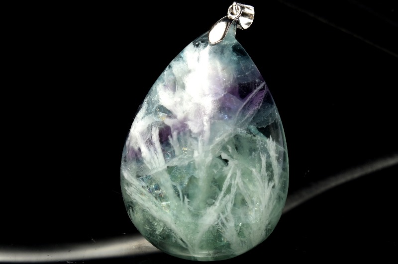 フェザーインフローライト(エンジェルフェザーフローライト・石花蛍石)は、フローライト(蛍石)の中に羽状の白い内包物が見られることからこう呼ばれています。