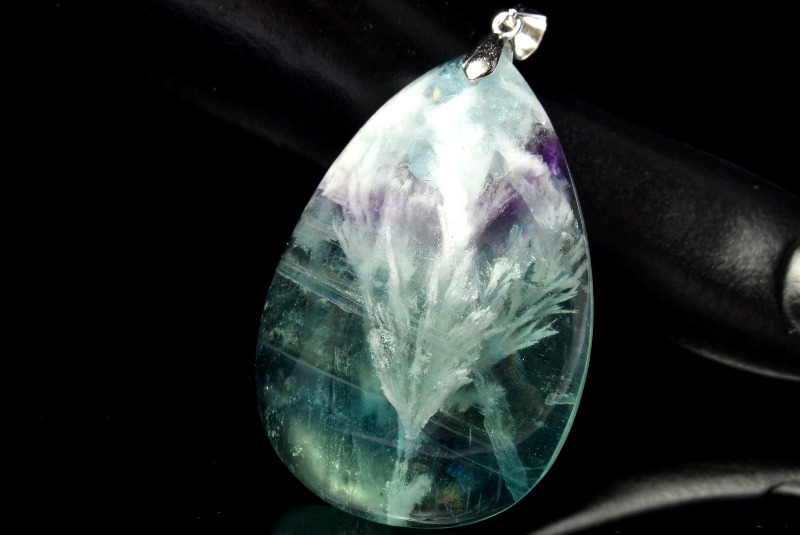 フェザーインフローライト(エンジェルフェザーフローライト・石花蛍石)は、フローライト(蛍石)の中に羽状の白い内包物が見られることからこう呼ばれています。