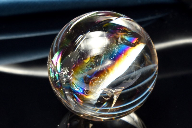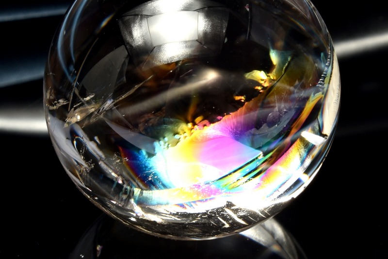 この美しい虹色がなぜ内包されたかというと、地殻の変動や外からの力が水晶に加わることで亀裂が生じ、それが虹色の分散光を放つためとされています。