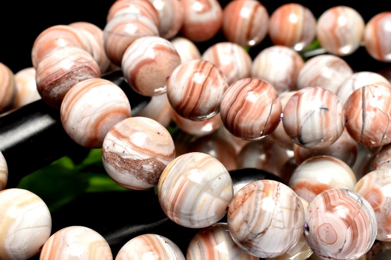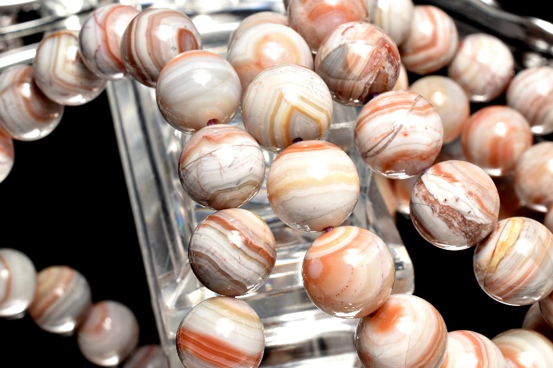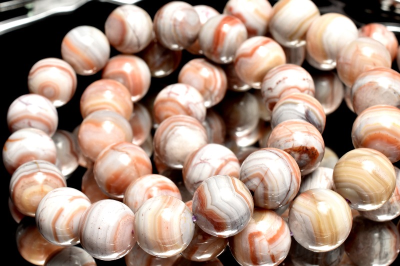 レースアゲートは玉髄の仲間で、小さな石英の結晶が集まってでき、白、灰、黒、赤、緑などが組み合わさった独特の縞模様が特徴で古来より国家の祭器、指導者の儀式などによく使われていたそうです。