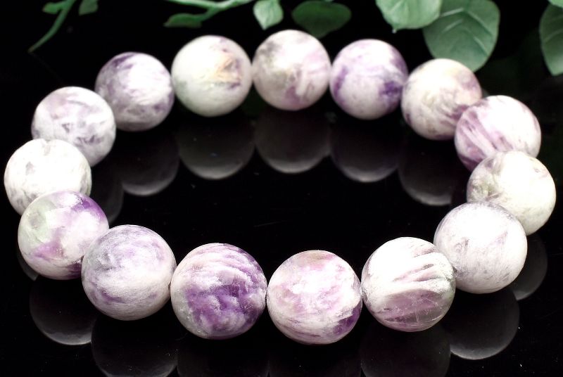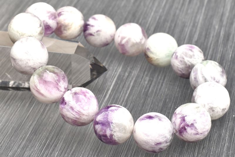 【1点物】幻想的◇白い羽根 フェザーインフローライト 14.5mm ブレスレット _U7396