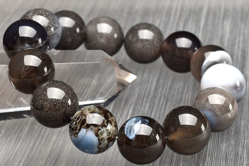 ブルーやホワイト、ブラウンなどの色が入り混じり一粒一粒個性的です。
