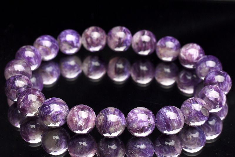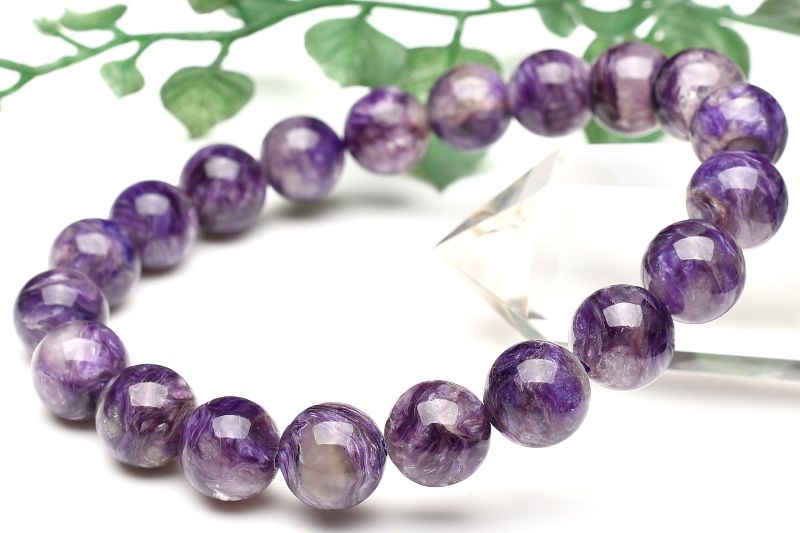 チャロアイトという名前の由来には、シベリアのチャロ川流域で発見された事とする説と、ロシア語の(Charo魅惑)から名づけられたという説がありますが、後者の方が有力であるとされています。その名の通り、この石の個性的な模様は、見る人を魅了してやみません。まさに、「魅惑の宝石」にぴったりな石です。