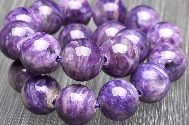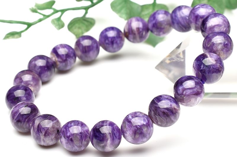 チャロアイトという名前の由来には、シベリアのチャロ川流域で発見された事とする説と、ロシア語の(Charo魅惑)から名づけられたという説がありますが、後者の方が有力であるとされています。その名の通り、この石の個性的な模様は、見る人を魅了してやみません。まさに、「魅惑の宝石」にぴったりな石です。