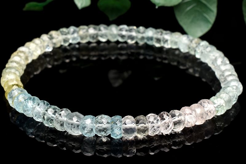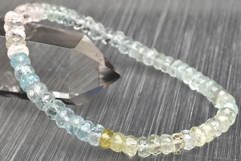 【1点物】AA+☆マルチカラー MIXベリル 3-4x5.5mm ボタンカット ブレスレット _U7472