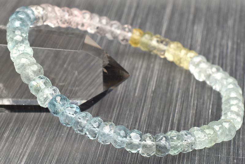 【1点物】AA+☆マルチカラー MIXベリル 3-4x6mm ボタンカット ブレスレット _U7477