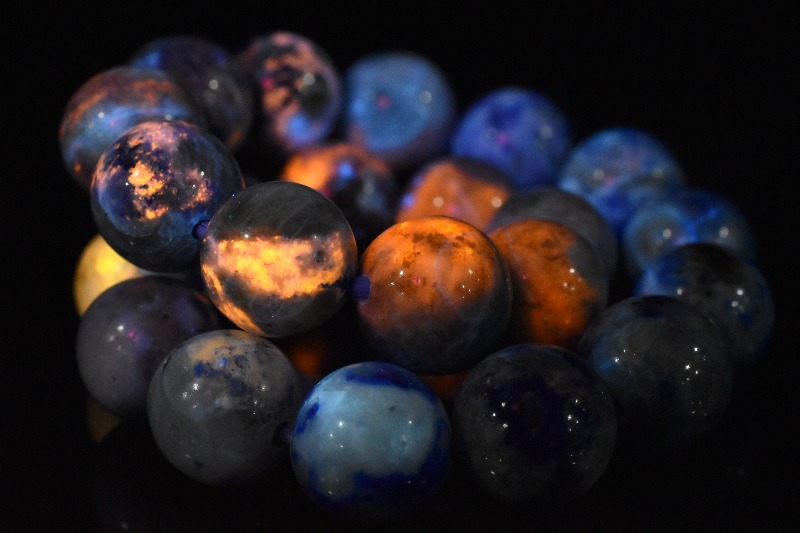 同じファトクロミズムの特徴をもつ石たちの中でも、ハックマナイトは紫外線を当ててから一定時間変色が持続するという珍しい性質があり、コレクターの間でも高い人気を誇ってます。