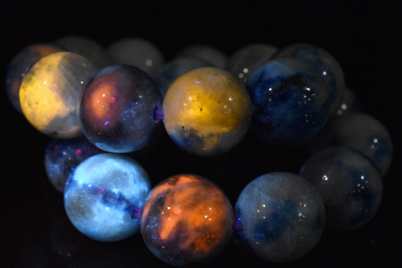 ハックマナイトは、ソーダライト(方ソーダ石)の変種で、紫外線で色が変わるファトクロミズムという不思議な特徴を持つパワーストーンです。