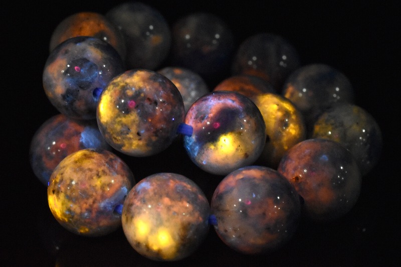 同じファトクロミズムの特徴をもつ石たちの中でも、ハックマナイトは紫外線を当ててから一定時間変色が持続するという珍しい性質があり、コレクターの間でも高い人気を誇ってます。