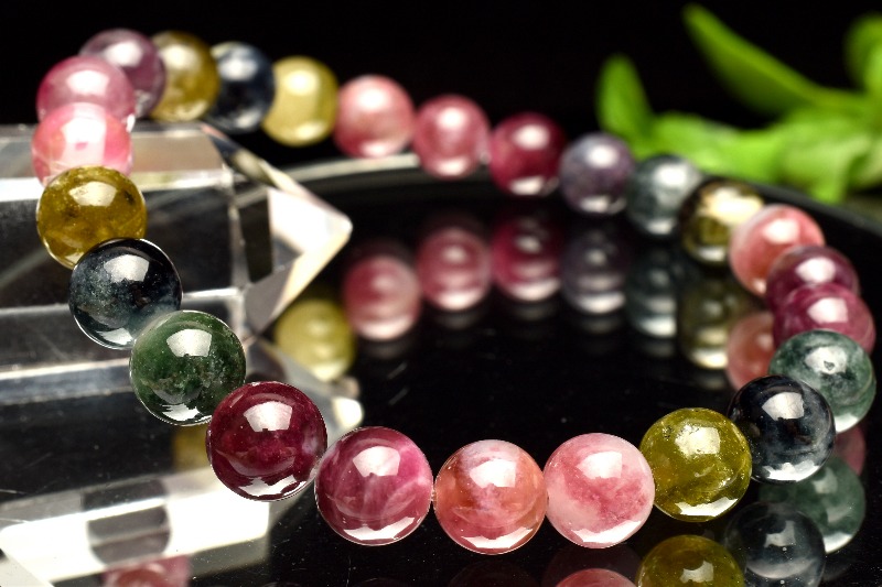 【1点物】希少カラー入り◇マルチカラー MIXトルマリン 7.5mm ブレスレット _MA8938