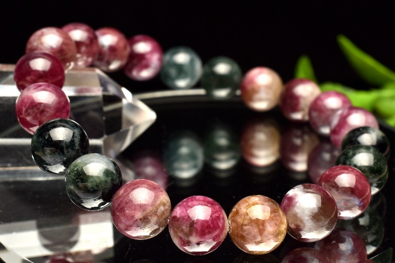 【1点物】希少カラー入り◇マルチカラー MIXトルマリン 9mm ブレスレット _MA8944