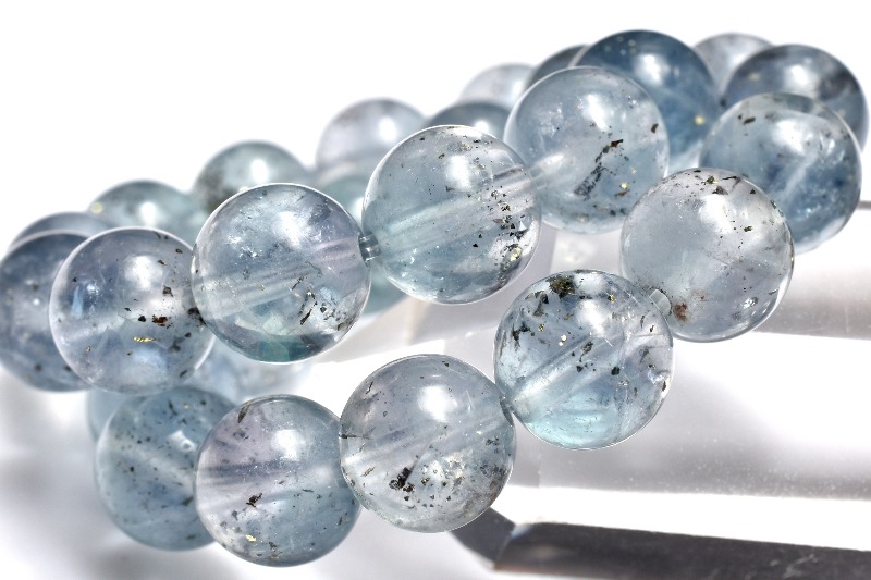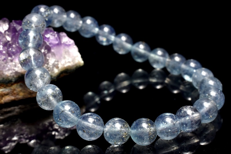 特徴・意味透明度の高い淡いブルーのフローライトに星々のようにキラキラ輝くパイライトが内包された幻想的で美しいブレスレットです。