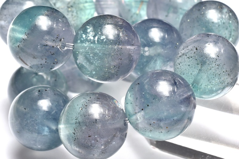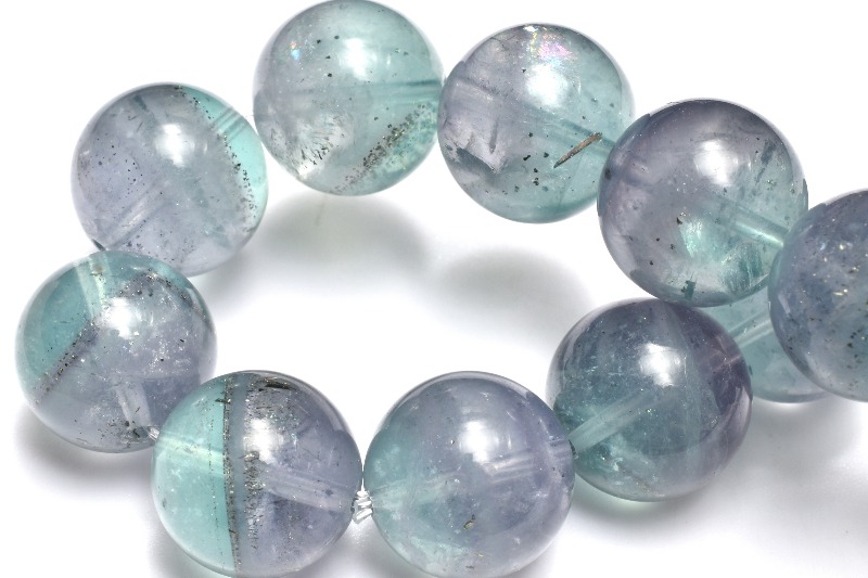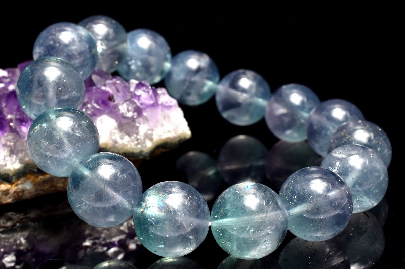 特徴・意味透明度の高い淡いブルーのフローライトに星々のようにキラキラ輝くパイライトが内包された幻想的で美しいブレスレットです。