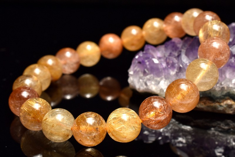 【1点物】紅葉カラー MIXルチルクォーツ 9mm ブレスレット _MA8986