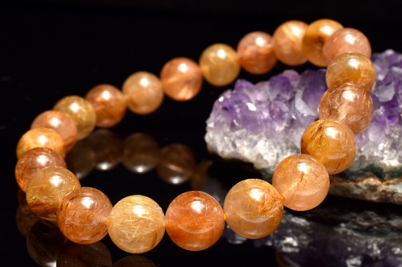 【1点物】紅葉カラー MIXルチルクォーツ 9mm ブレスレット _MA8987