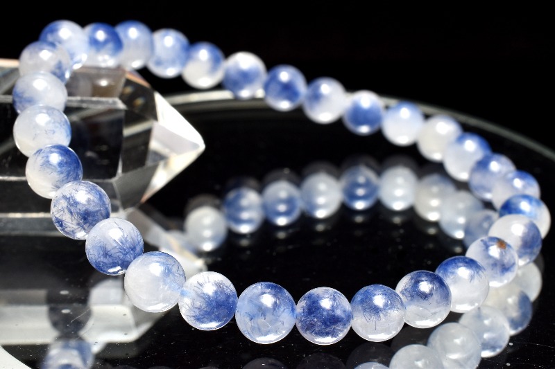 【1点物】希少◇濃いブルー デュモルチェライトインクォーツ 6mm ブレスレット _MA9037