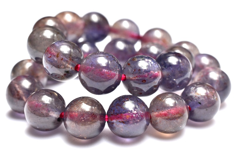 全体的に艷やかで透過性もあり、多色性を確認できる珠もあります。
