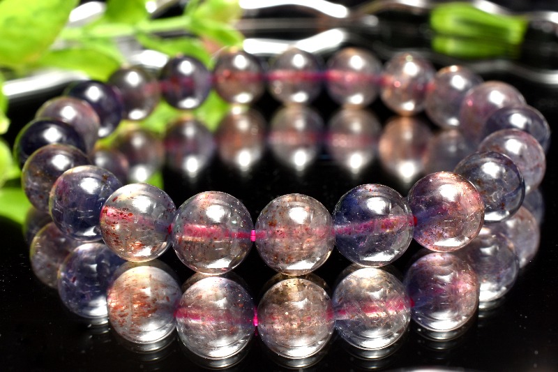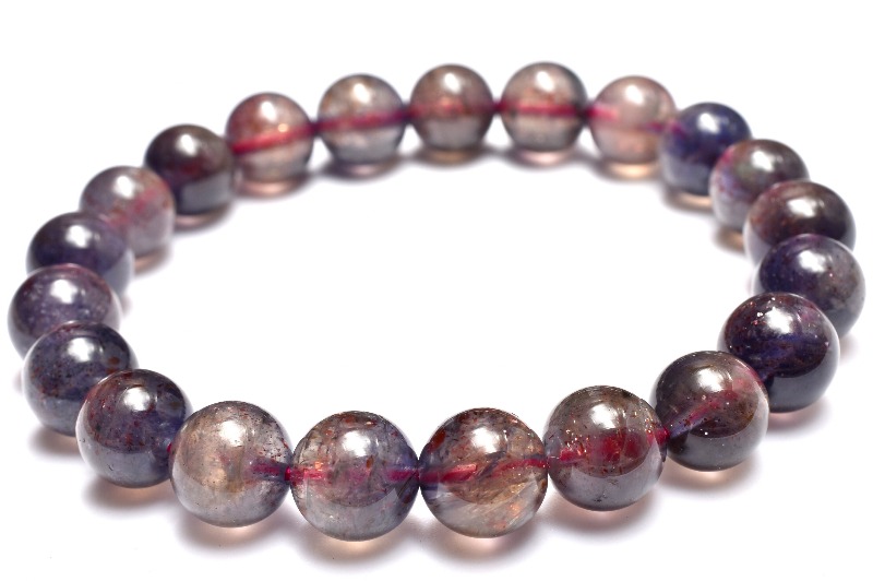 【1点物】多色の石◇インド産 アイオライトサンストーン 9mm ブレスレット _MA9059