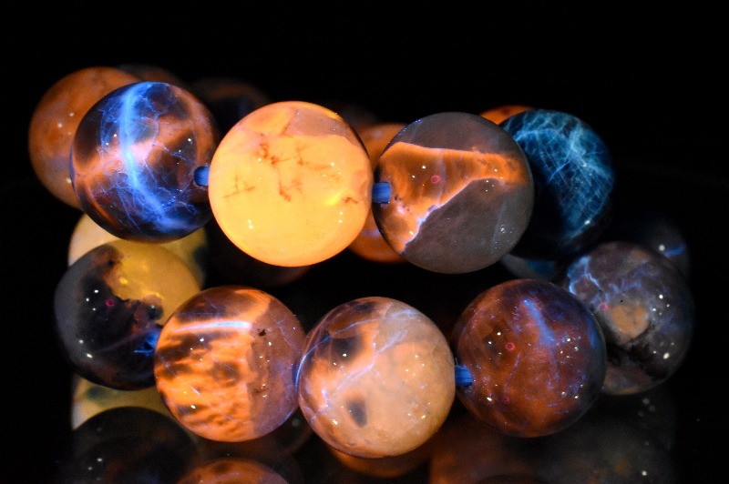 【1点物】希少◇発光鉱物 ブルーハックマナイトシリカ 9.5-10mm ブレスレット _MA9070