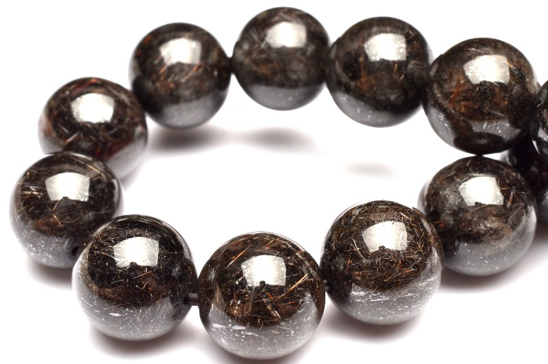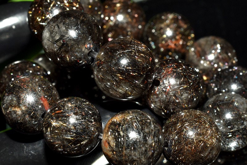 材質ブラックブロンズルチルクォーツ 10-10.5mm 産地:ブラジル