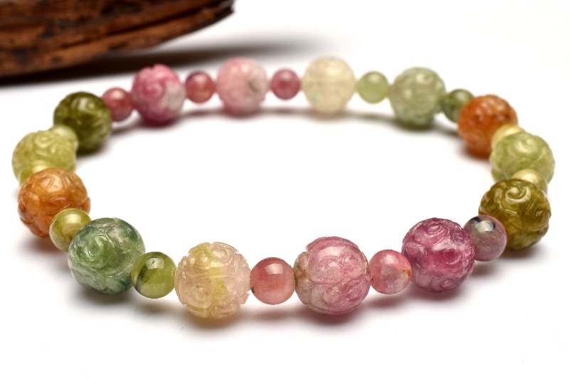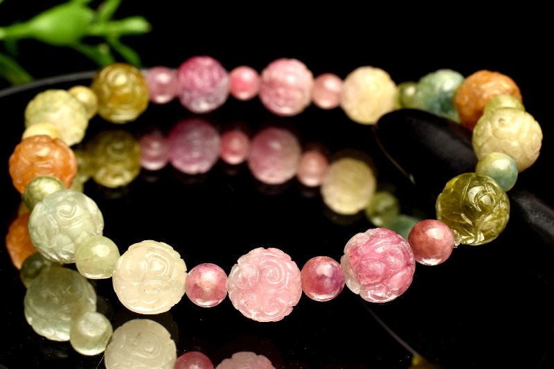 【1点物】AA☆レアカラー入り! ウォーターメロントルマリン 8(丸玉5)mm マニ車 ブレスレット _MA9132